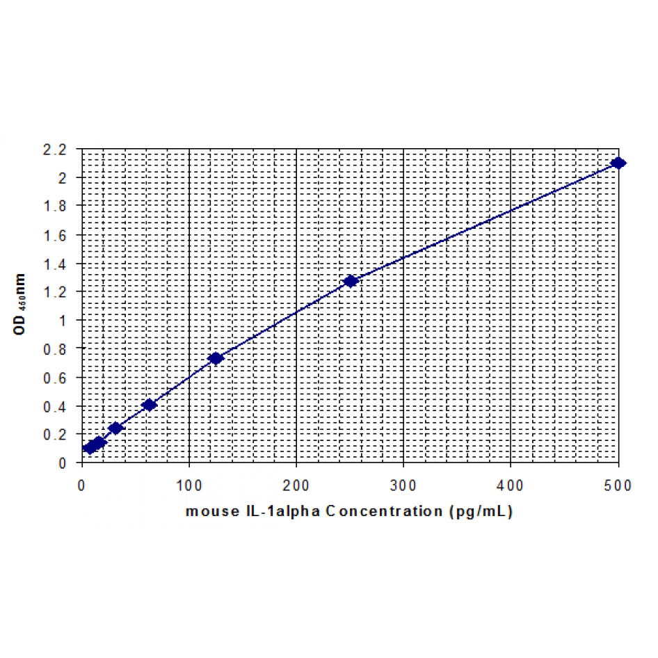 This mouse IL-1α ELISA is a 3.5-hour solid-phase immunoassay readily applicable to measure mouse IL-1α levels in serum, cell culture supernatant, and other biological fluids in the range of 0 to 500pg/mL.